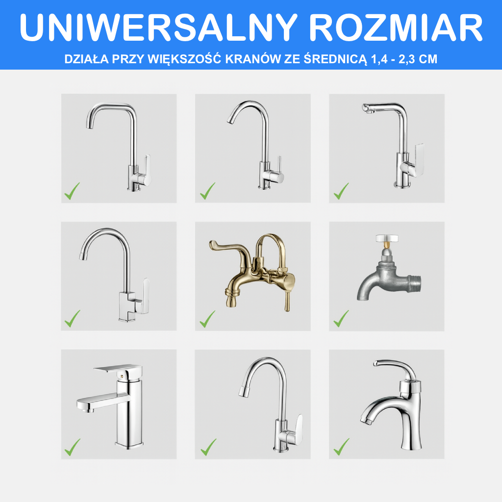 ✅ Pasuje do kranów od 1,4 cm do 2,3 cm